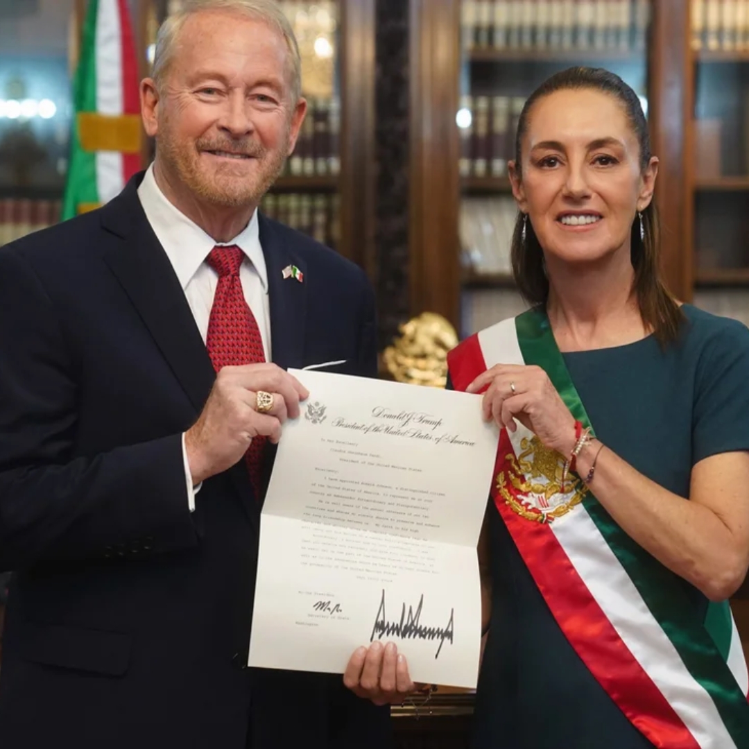 Sheinbaum compartió una fotografía con el embajador Johnson en su cuenta de X, destacando el encuentro en el despacho presidencial. El nuevo embajador de Estados Unidos había visitado previamente la Basílica de Guadalupe junto a su esposa Alina, para pedir sabiduría y fuerza en su nueva responsabilidad.